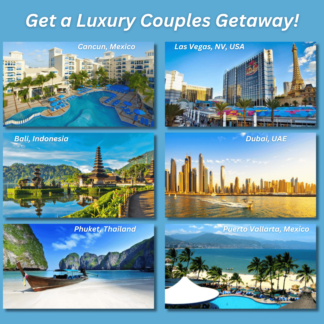 ✔️ Get in a draw for a chance to win a Luxury Couples Getaway.
